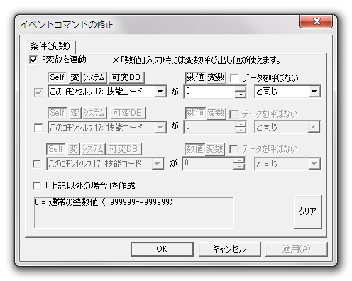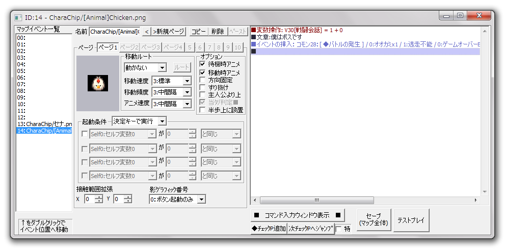 連打防止の為に、イベント終了後に10ウェイト~30ウェイト(0.5秒)入れる事をお勧めします。